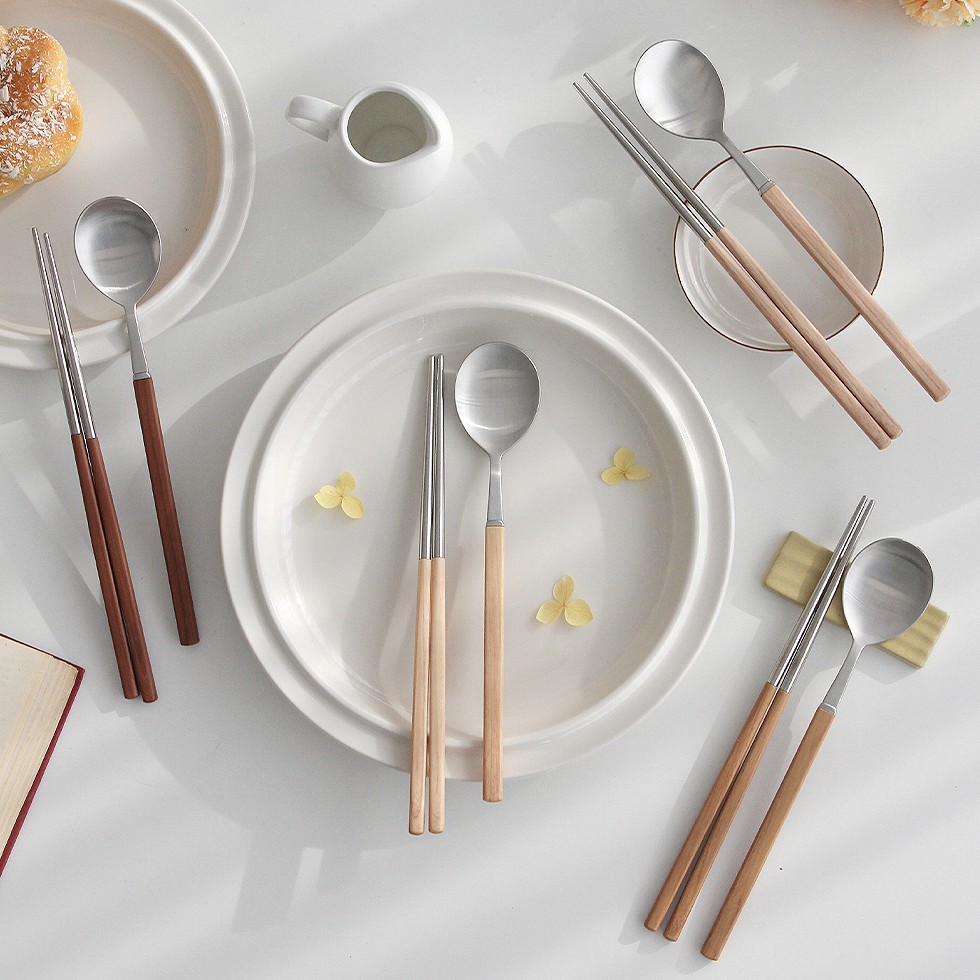 (4+1) 국산 수저세트 고급 스텐 나무 신혼부부 예쁜